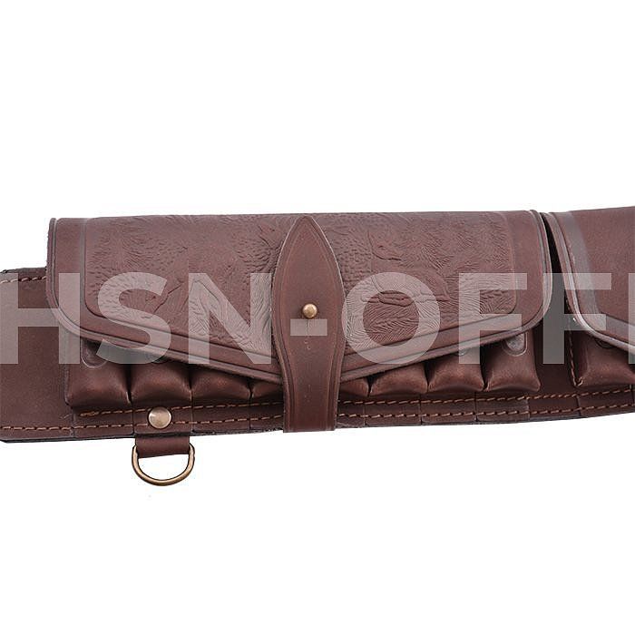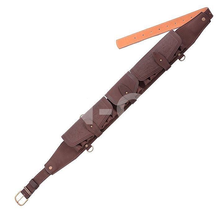 Изготовлен в традиционной форме из натуральной кожи. Патронташ надежно держит 20 патронов в лузах. Позволяет загрузить патроны снаряженные в гильзы длиной от 70мм. до 89мм. Оснащен клапанами для защиты патронов от не погоды. В производстве используется итальянская фурнитура, которая практически не дает бликов. Раскрой производится на специальном оборудовании, что гарантирует высокое качество изделий. Изделие украшено миниатюрами охотничей тематики, нанесенным методом горячего тиснения.