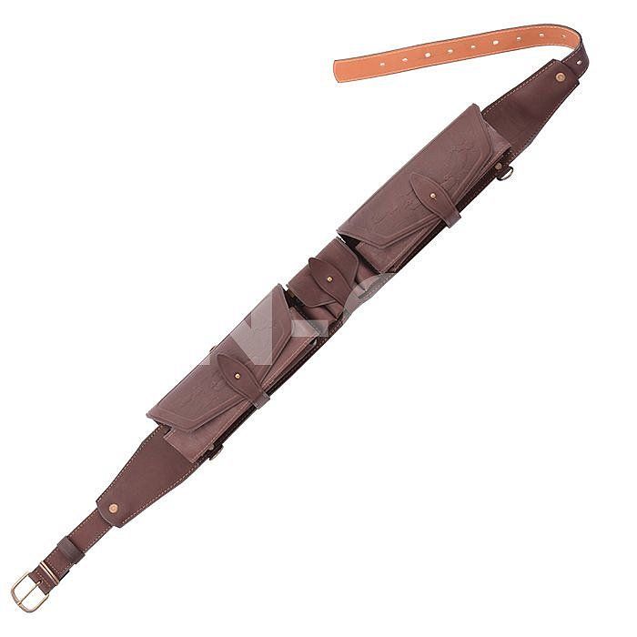Изготовлен в традиционной форме из натуральной кожи. Патронташ надежно держит 40 патронов в лузах.